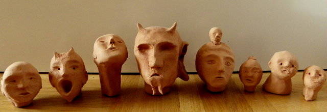 unverkäuflich, 2014, Ton gebrannt, 9 Figuren von 3 x 2 x 1.5 bis 8 x 7.5 x 6.5 cm